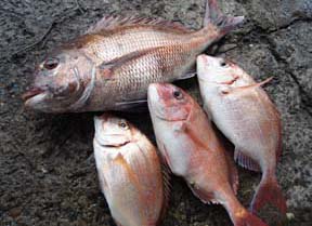 6月12日(水) 1名様 朝便 完全フカセ。真鯛72cm×1枚、63cm×1枚、30cm〜55cm×4枚、20cm×2枚、チダイ少々でした。