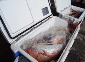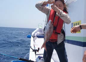 ◆ 6月23日(日) 朝便、魚釣り体験。 大阪から女性2名様。チダイ20cm×15、他少々でした。