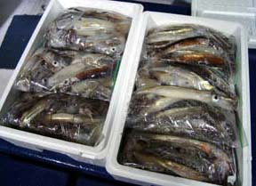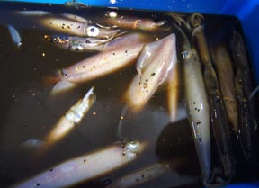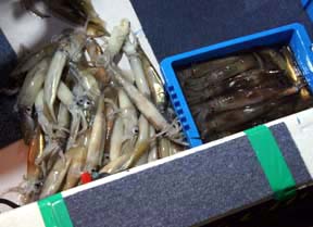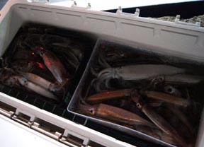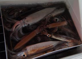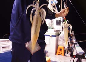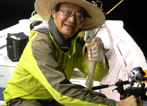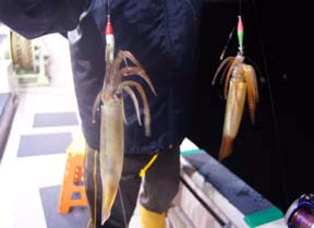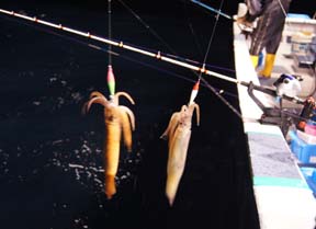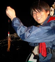 ◆ 6月23日(日) 2名様イカ釣り体験。(PM6:00〜PM10:00) スルメイカ船中80杯、1人30杯、50杯でした。