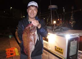 6月8日(土)ベテラン2名様 お昼1時半に出船。真鯛をされたあとアジや根魚が当たり、延長で帰港は夜10時になりました。