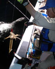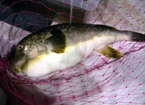 6月10日(月) 乗り合い4名様 半夜便(PM5:30〜PM11:30) スルメイカ船中300杯、トラフグ1匹釣れました。