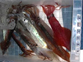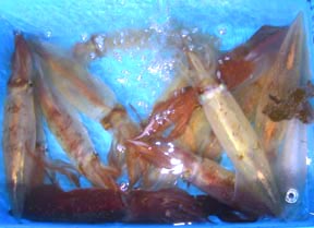 ◆ 6月29日(土) 5名様仕立て半夜便 (PM5:00〜PM11:00) 胴付き後イカ釣り。マイカ船中20杯、スルメイカ船中40杯、チダイ20cm〜30cm×15、尺アジ×5、中アジ×5、ウマズラ×10でした。