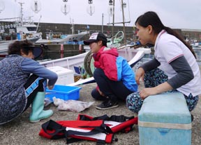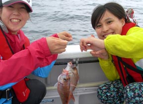 魚釣り体験に挑戦のお客様。 根魚はアジ、ウマズラ、チダイ、カサゴ、メバル等が釣れます。