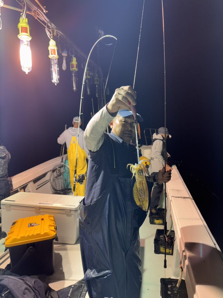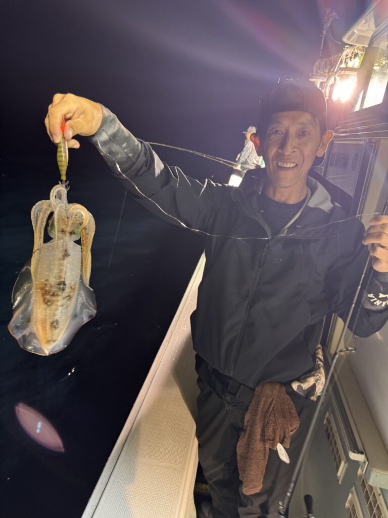 10月5日アオリ半夜便 2025年10月6日 最終更新日時 : 2025年10月6日 yashirokai_staff 10月5日アオリ半夜便。潮速く、波高。アオリのサイズは大。雨の中チャレンジ有り難うございました。