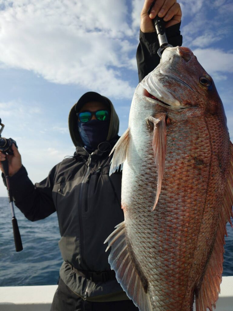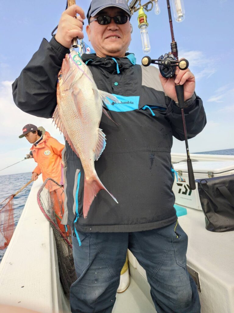 4月20日タイラバ朝便🐟 2026年4月20日 最終更新日時 : 2026年4月20日 yashirokai_staff 4月20日タイラバ朝便。南の風やや強く。少々波高。真鯛とシーバス、釣果は安定しています。越前沖タイラバ便、確変突入です。
