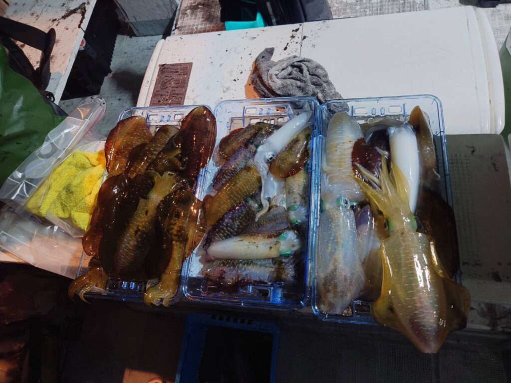 9月23日アオリイカ便🦑 2025年9月24日 最終更新日時 : 2025年9月24日 yashirokai_staff 9月23日アオリ便。アオリ半夜便釣果、竿頭40。チャレンジお待ちしてます。お疲れ様でした。